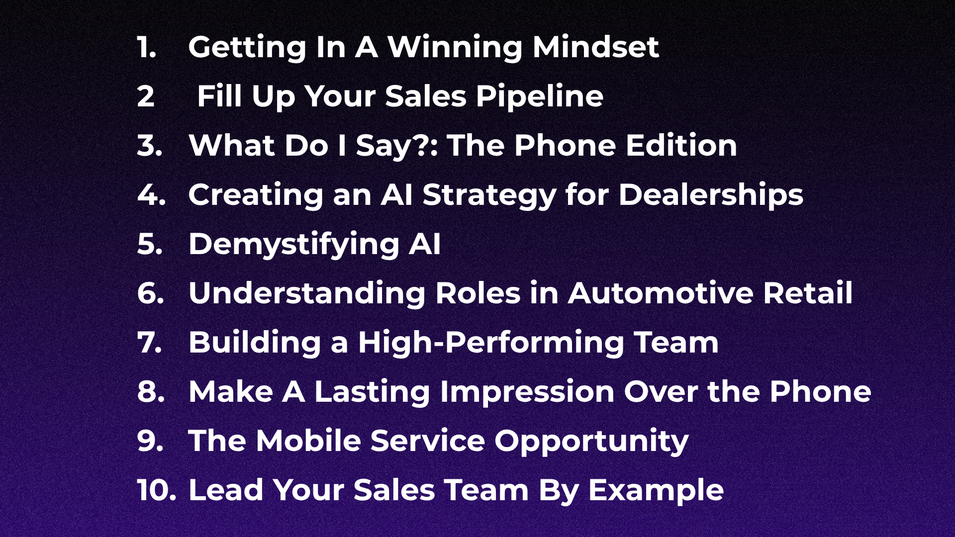 Dealerships aren't skipping straight to Create an AI Strategy. They're starting with Getting In A Winning Mindset. They're mastering What Do I Say on the Phone before they tackle automation. They're building the human infrastructure first, then layering in the tech.
